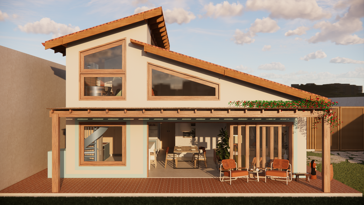 O projeto foi concebido em coautoria com o escritório Victória Scussel Arquitetura. Juntos, abraçamos o escopo sustentável trazido pelos próprios moradores e nos debruçamos sobre um universo de possibilidades para traduzir seus desejos em soluções arquitetônicas. A busca por ventilação cruzada, pé-direito generoso para favorecer a circulação do ar e abundante iluminação natural norteou nossas principais decisões. Entre outras estratégias adotadas, destacam-se a instalação de cisterna para captação de água da chuva, painéis de energia solar e o uso de materiais de baixa condutividade térmica sempre que possível.